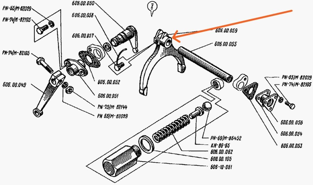 Вилка 606.00.059 — важный компонент, управляющий или соединяющий элементы в гидравлических или механических системах спецтехники. В автогрейдере эта вилка применяется в коробке передач производства Польша