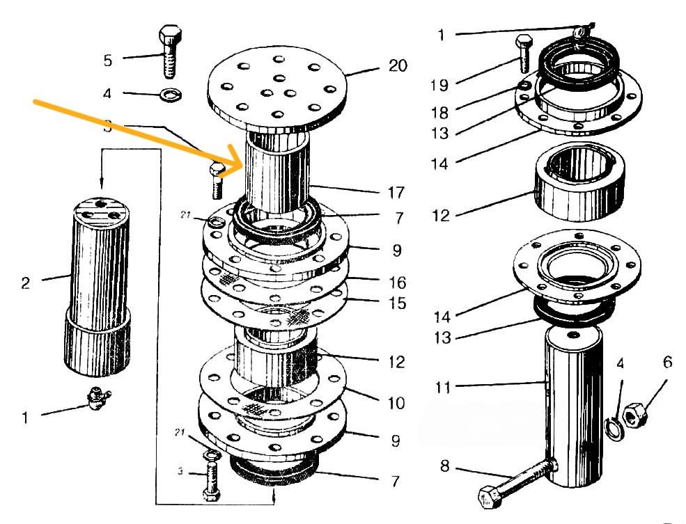 Комплект ремонтный сочленения полурам, старого образца, состоит из: